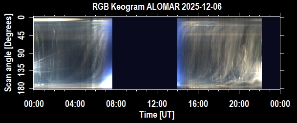 Keogram: Magnetic meridian N-S (0-180 degrees)