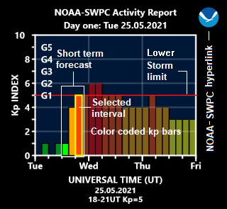 Hint: You can set your own Kp index by tapping the color scale on the wheel. |