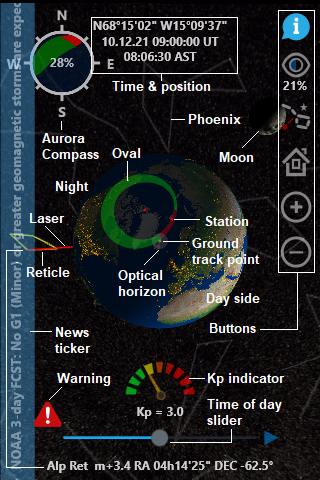 as a tool to track down the aurora. It renders the Earth in 3D with rotation and scaling at your