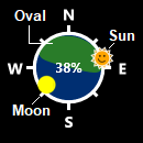 The oval all-sky cover is shown in percentage in the center of the compass. The orange star marks the position of the Sun in the compass. The Moon symbol is explained below according to phase and age. These will only appear if they are within the field of view as seen from the Ground-track point. |