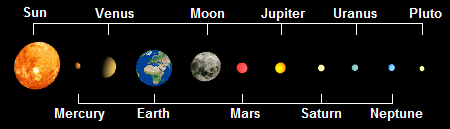 Textures of the Earth, the Sun and the Moon are downloaded from the internet. [7,8]